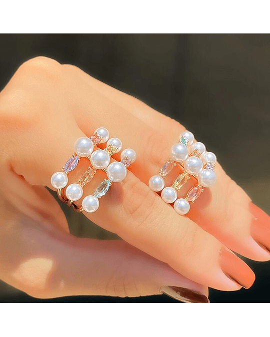 Anel Inspiração com Pedras Coloridas e Perolas