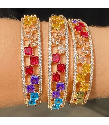 Bracelete Cravejado em Micro Zircônias Coloridas