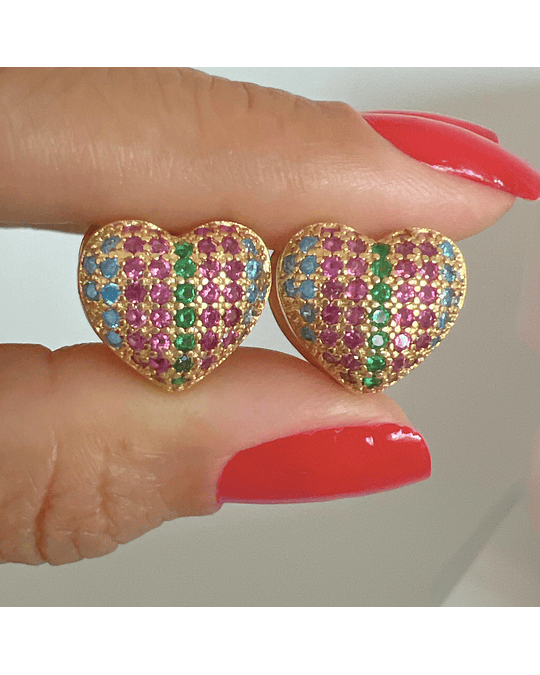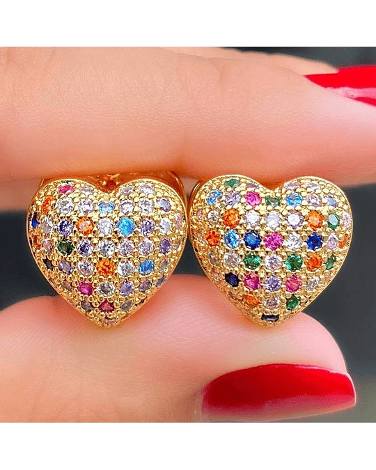 Brinco de Argola em Formato de Coração Cravejado em Micro Zircônias