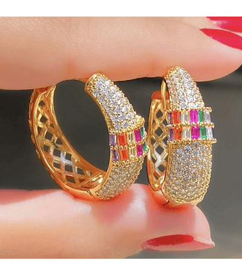 Explore a sofisticação deste brinco duplo em formato de argola, meticulosamente cravejado com micro zircônias em cores cintilantes. Este acessório único é uma escolha deslumbrante para adicionar um toque de elegância e vivacidade ao seu visual. Experimente o brilho radiante das cores Cand e destaque-se com estilo e charme.
