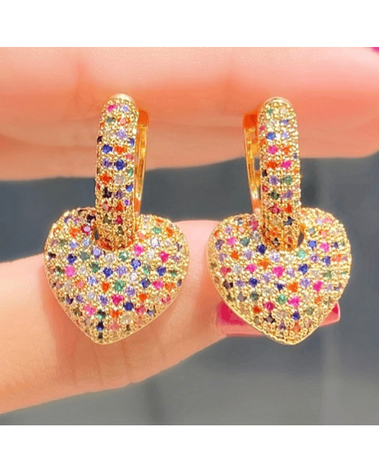 O destaque deste brinco é o pingente de coração, também cravejado em microzircônia, adicionando um toque de delicadeza e romance à peça.