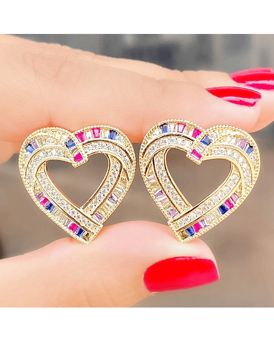 Brinco em Formato de Coração Cravejado em Zircônias Navetes