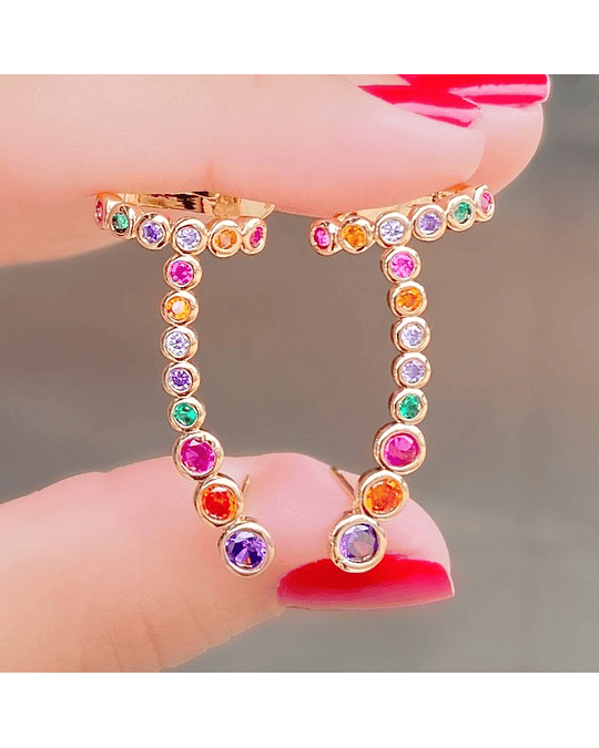 Destaque-se com este ear cuff deslumbrante, adornado com zircônias colors em ambos os lados. Ideal para quem busca um acessório sofisticado e cheio de estilo.