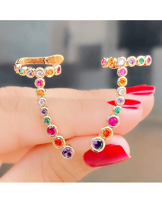 Brinco em Formato de Ear Cuff em Zircônias Colors (dois lados)