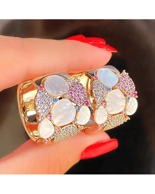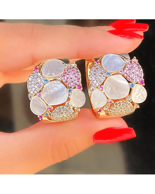 Brinco em Madrepérola Cravejado em Zircônias Coloridas