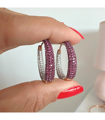 Argola Cravejada de Zircônias Pink e Cristal co...
