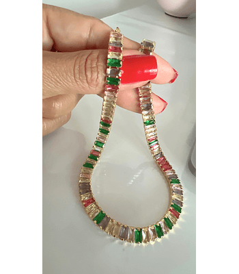 Colar com Pingente em Formato de Coração Cravejado nas Bordas em Micro Zircônias e Minicorações Coloridos.