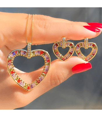 Conjunto Colar e Brinco de Coração Cravejados e...