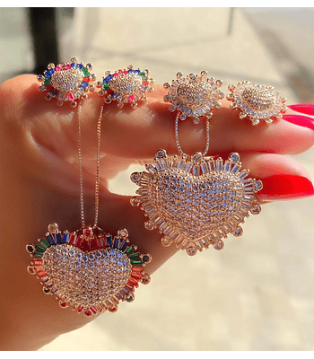 Conjunto Colar e Brinco de Coração Cravejados e...