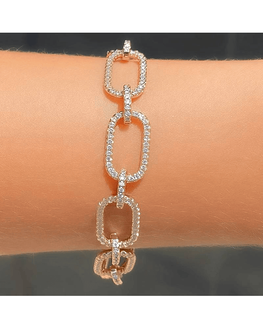 Pulseira Modelo Corrente com Elos Centrais Cravejados em Micro Zircônias - Linha Luxo