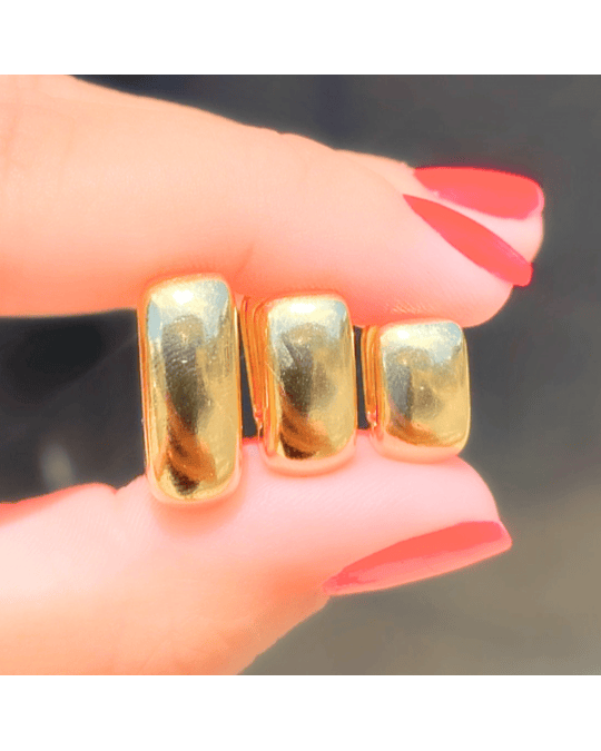 Trio de Argolas em Formato de Quadrado Banhada a Ouro